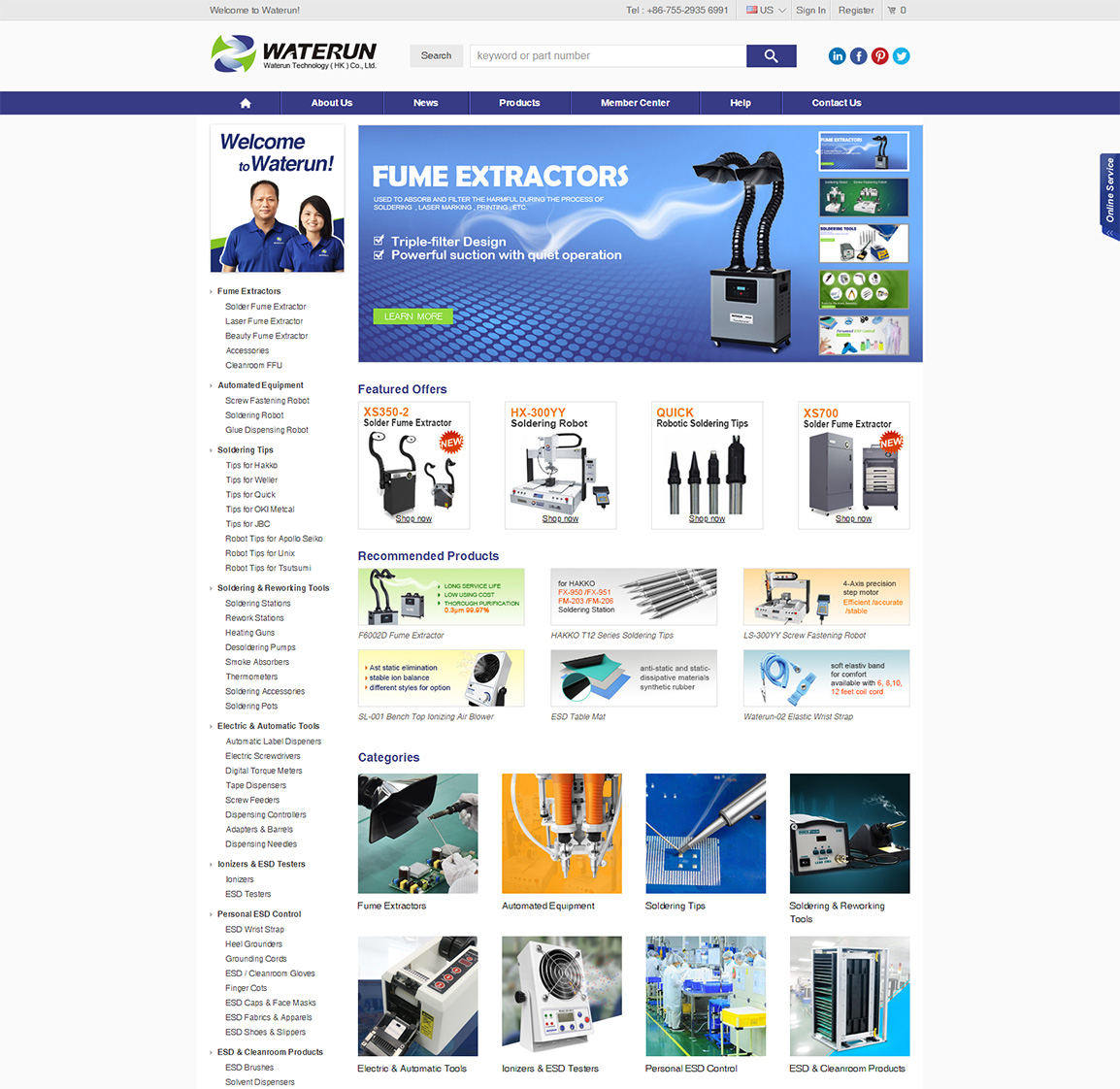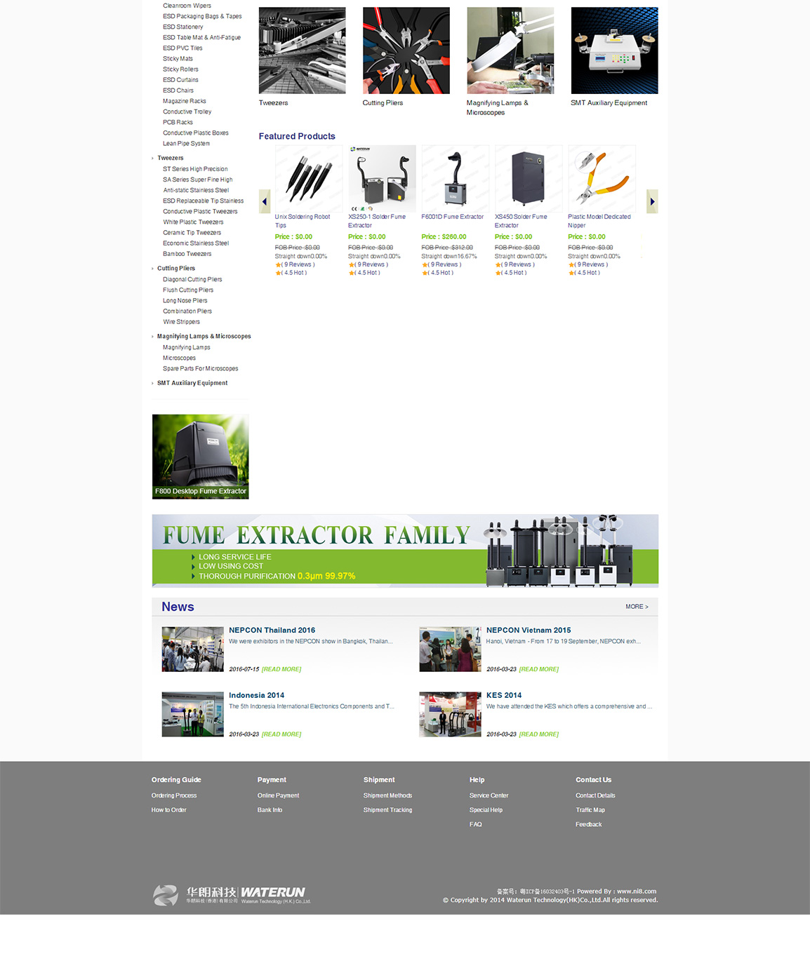 Waterun Technology Co., Ltd, established in 2003, is located in Shenzhen China. We are a leading manufacturer & exporter of Cleanroom products, ESD products, Tools & Instruments for electronic assembly industry. Waterun owns two factories and one business / logistics center and nearly 100 employees.
