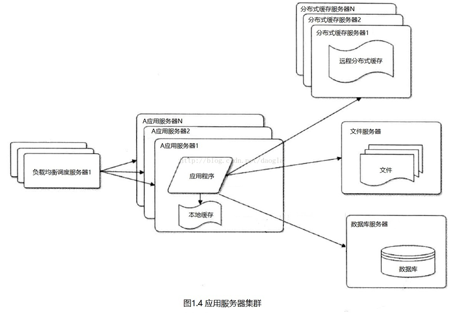 隨著業(yè)務(wù)量持續(xù)增加,應(yīng)用程序訪問緩存數(shù)據(jù)會成為瓶頸,這個(gè)時(shí)候需要增加本地緩存,有的也需要分布式緩存。分布式緩存是指緩存部署在多個(gè)服務(wù)器組成的服務(wù)器集群中,以集群的方式提供緩存服務(wù),其架構(gòu)方式主要有兩種,一種是以JBoss Cache為代表的需要同步更新的分布式緩存,一種是以Memchached為代表的互不通信的分布式緩存。如下圖: