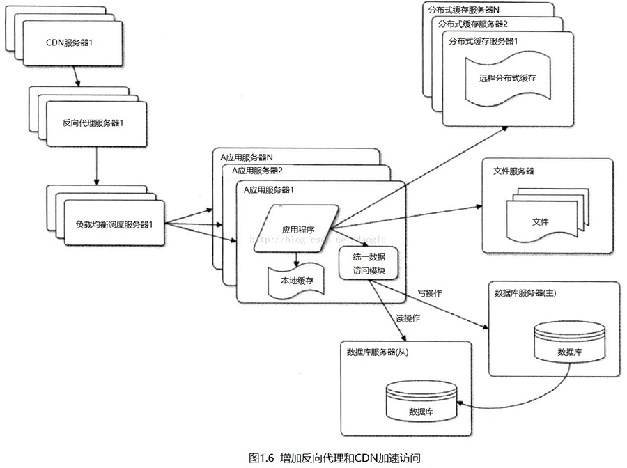 隨著業(yè)務(wù)量暴增,單一區(qū)域的服務(wù)器帶寬將不能承載全國的業(yè)務(wù)需求,這時(shí)候需要增加反向代理和CDN服務(wù)器。CDN系統(tǒng)能夠?qū)崟r(shí)地根據(jù)網(wǎng)絡(luò)流量和各節(jié)點(diǎn)的連接、負(fù)載狀況以及到用戶的距離和響應(yīng)時(shí)間等綜合信息將用戶的請求重新導(dǎo)向離用戶最近的服務(wù)節(jié)點(diǎn)上。其目的是使用戶可就近取得所需內(nèi)容,解決 Internet網(wǎng)絡(luò)擁擠的狀況,提高用戶訪問網(wǎng)站的響應(yīng)速度。