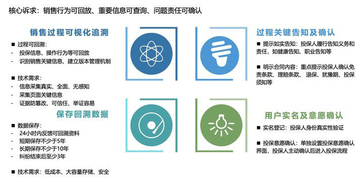 “合規(guī)”一直是保險(xiǎn)業(yè)經(jīng)營的最重要指標(biāo)?;ヂ?lián)網(wǎng)可回溯管理《通知》核心就是為了規(guī)范互聯(lián)網(wǎng)保險(xiǎn)市場,保護(hù)消費(fèi)者合法權(quán)益。為此,《通知》從銷售頁面設(shè)置、重要條款展示、閱讀確認(rèn)、身份驗(yàn)證、回溯文件保存等方面,都做了詳細(xì)的規(guī)定。