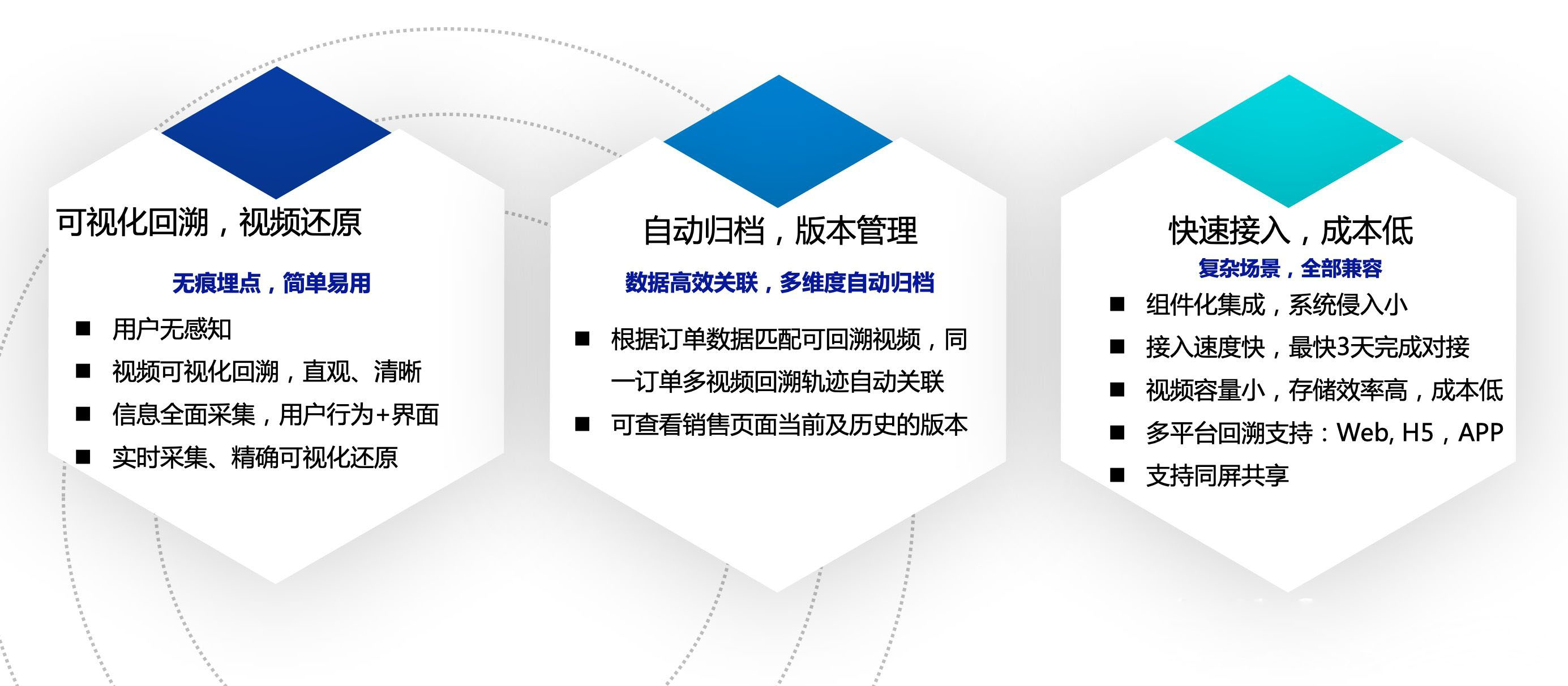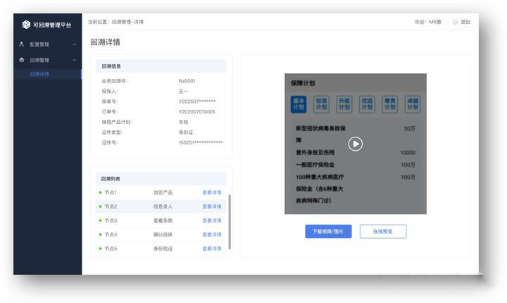 新規(guī)于10月1日開始生效,如何在短時間內(nèi)完成回溯系統(tǒng)的建立、投保頁面的改進(jìn)、以及系統(tǒng)的對接等工作。得助·智能AI可視化回溯方案,采用組件化方式對接,能夠在盡可能減少系統(tǒng)改造的前提下,最快3天完成對接,同時支持APP、PC、H5、小程序等多平臺回溯。