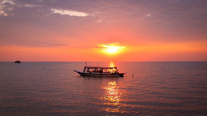洞里薩湖的日落↑