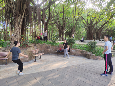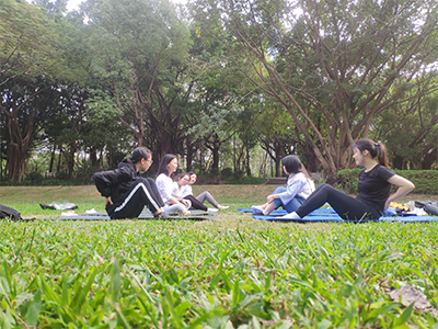 先是在公司樓下集合,然后徒步走到中心公園,一路上歡聲笑語,十幾分鐘就到了中心公園。到了之后,女同事們找了個僻靜的地方擺好瑜伽墊開始練瑜伽,技術(shù)部的嬌嬌教了大家很多動作,因為沒有做熱身運動,在做高難度動作的時候,一個同事還不小心扭傷了手,不夠也從中明白了平時有多缺乏運動,這個同事在活動結(jié)束后還偷偷告訴小編,以后晚上都要開始夜跑,我想這也算沒有辜負活動的最初目的吧!